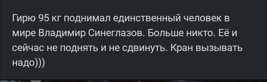 Гирю 95 кг поднимал единственный человек в мире Владимир Синеглазов. Больше никто. Её и сейчас не поднять и не сдвинуть. Кран вызывать надо)))