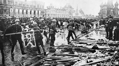 Во время парада было показано отношение. Когда несли трофеи-знамёна, музыка СТИХЛА, остался только барабанная дробь. Знамёна несли опущенными, а перчатки одеты потому что все в перчатках и погода "шептала".