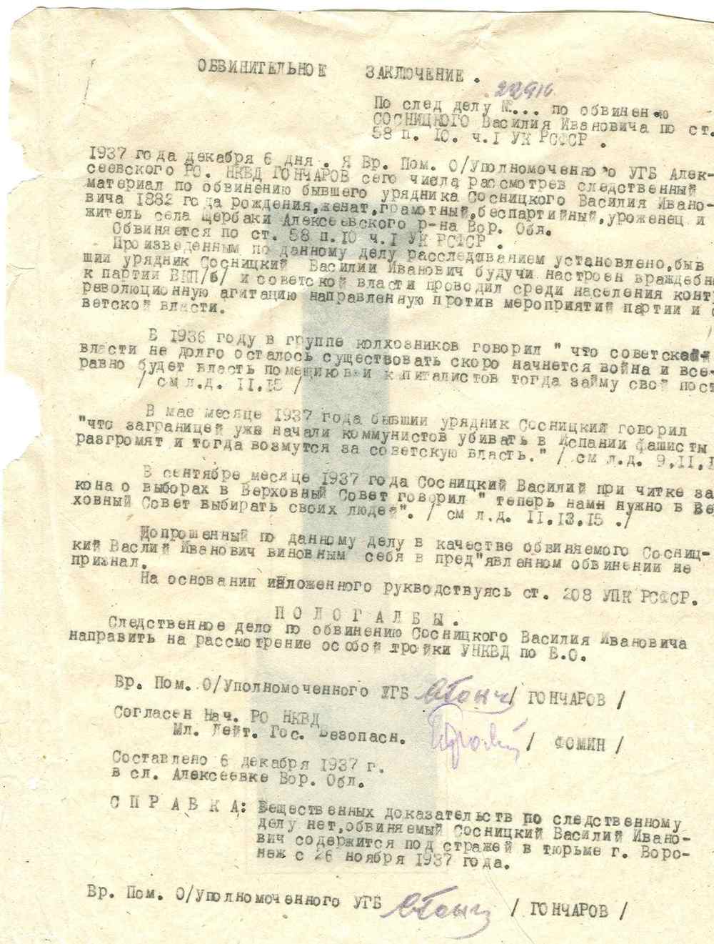 Вопрос: что вам известно о контреволю-[так в тексте – с одной буквой р] ционной деятельности со стороны Сосницкого Василия