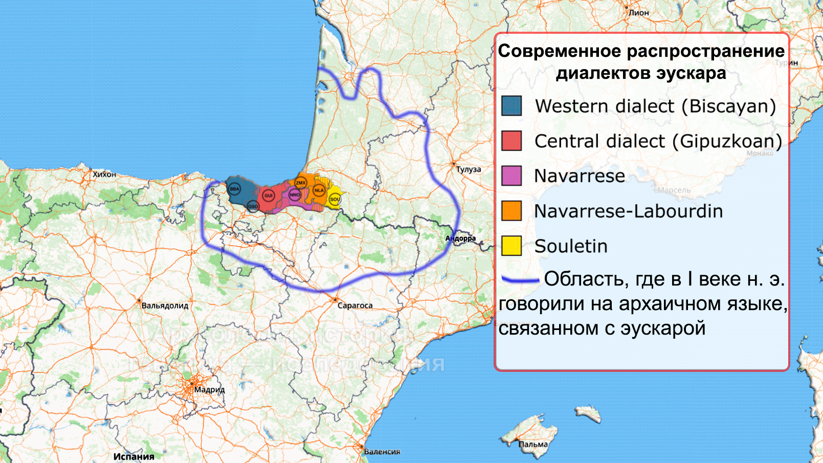Контакты с римлянами, а значит, и с латынью, были по побережью Средиземного моря на Пиренейском полуострове, после чего последовала их экспансия к атлантическому побережью со слабым влиянием на франко-кантабрийский регион, что подтверждено в новой работе.