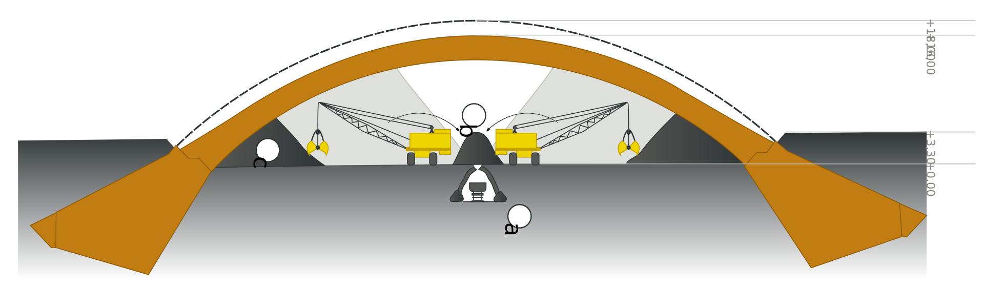 Предполагалось предварительно возвести гигантский железобетонный купол, способный целиком прикрыть стройплощадку от бомбардировок. После этого под этой гигантской «крышей», полностью закрывающей область работ, должна была быть сделана выемка грунта и в образовавшемся внутреннем пространстве возведены всё необходимые сооружения для подготовки баллистических ракет. Этим гигантским куполом и стал так называемый "Купол Эльфо" или "Купол Визерне". Его толщина составляла 5,1 метра, диаметр 71 метр и вес 55000 т. Под куполом располагался огромный октогональный подземный зал диаметром 41 метр и высотой в 33 метра. Разделённый на несколько горизонтальных ярусов, зал должен был служить для предстартовой подготовки и заправки ракет горючим и жидким кислородом, поставлявшимся расположенным уровнем выше кислородным заводом. Но вся внутренняя инфраструктура так и не была окончена. Союзники заметили это сооружение и начали утюжить обычными бомбами, что не дало никакого эффекта. Было лишь одно попадание в купол и безрезультатно. Но позже были использованы новые 5-тонные сейсмические бомбы «Tallboy», которые сделали своё дело. Сбрасываемые с большой высоты, бомбы разгонялись до сверхзвуковой скорости и пробивали грунт на глубину до 30 метров перед детонацией, производя эффект искусственного землетрясения. Взрывы бомб настолько дестабилизировали холмы вокруг, что площадка подвергалась постоянным оползням. Продолжение работ на стройплощадке было бессмысленным. Некоторое время рассматривалась возможность использования уцелевшей конструкции купола для размещения под ним кислородного завода, снабжающего кислородом новые, мобильные позиции Фау-2. Но высадка союзников в Нормандии и стремительное наступление англо-американских войск в Северной Франции привели к тому, что 5 сентября купол оказался в руках союзников. Купол Эльфо стал "бетонным воплощением мести", рухнувшим под ударами авиации.
