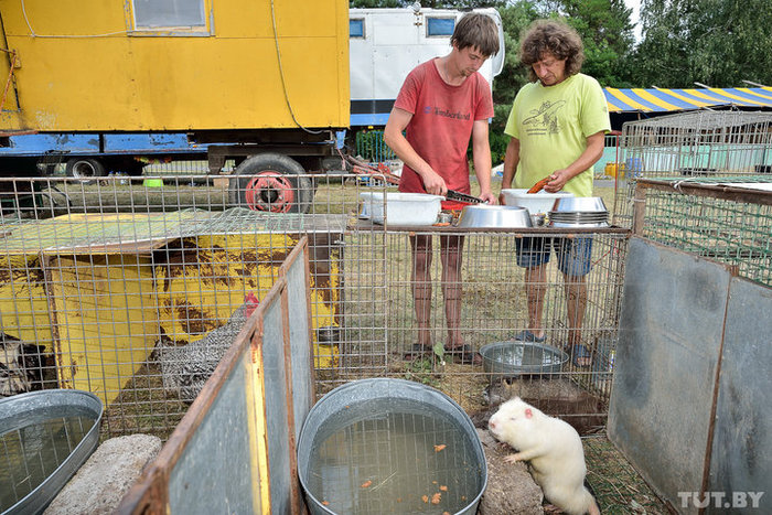 — Если веток слишком много, то утром в вольере можно увидеть хатку бобра, — смеется артист и добавляет, что в клетках питомцев, которые научились подниматься по лестнице, обязательно есть крыша. Иначе любознательные бобры вряд ли упустят возможность выбраться на свободу, чтобы побродить за кулисами цирка.