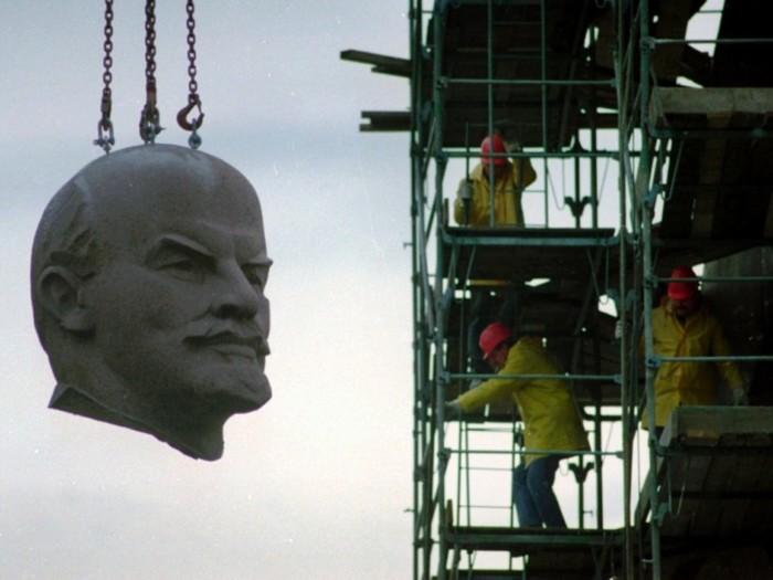 Процесс демонтажа памятника. Возможна это событие нашло свое отражение в фильме "Гуд бай, Ленин!"