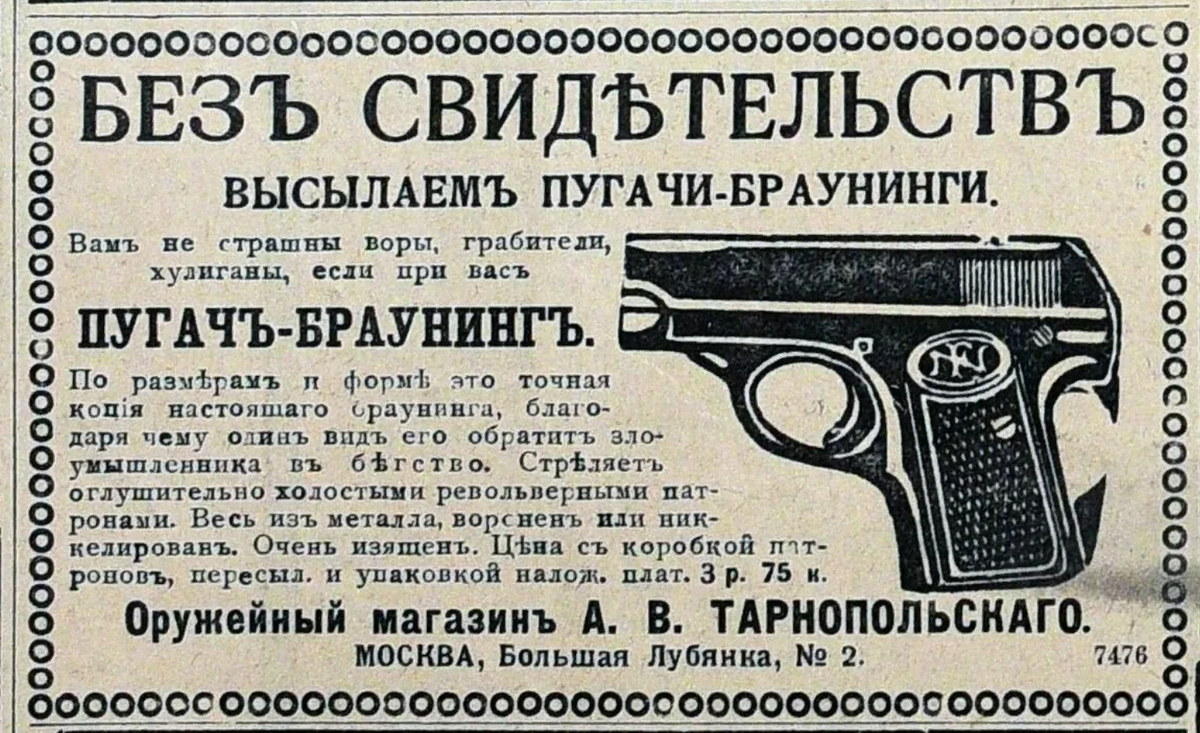 Миф о полной свободе обращения с оружием в дореволюционной России частично основан на правде, но с большими оговорками. Гладкоствольные охотничьи ружья продавались довольно свободно в Москве и центральных губерниях, но по мере продвижения к западным рубежам и на территории польских земель ситуация становилась значительно строже. Там введение ограничений на оборот оружия происходило ещё в конце XIX века.