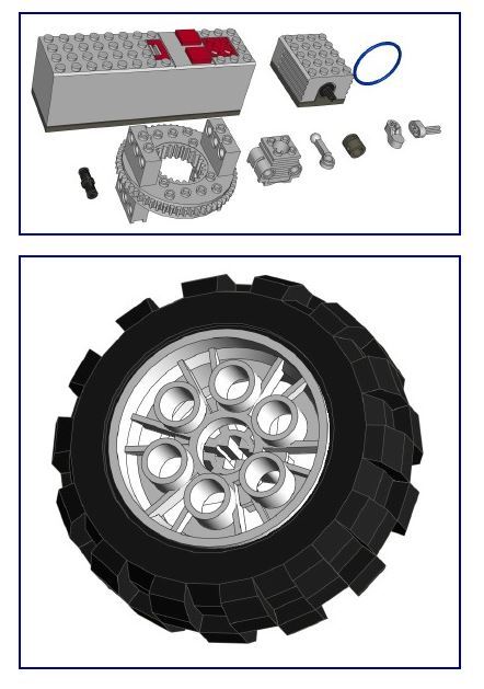 Чёрные пины новые, теперь их можно легко вытащить руками и не прибегать к помощи плоскогубцев. Для больших моделей с вращающейся башней (например кран) сделали поворотный стол. Внутри и снаружи на нём зубчики для передачи вращения. Детали макета двигателя гораздо больше похожи на настоящие (старые были квадратные), сами поршни круглые к шатунам крепятся через шаровую, дели коленчатого вала имею смещение на 0,5, ход поршней в цилиндрах равен 1. Новые силиконовые ремни очень прочные и не усыхают со временем, при достижении порога крутящего момента они просто проскальзывают, но не портятся от этого.