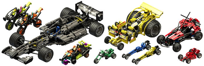 Набор 8448 Super Street Sensation так вообще был про дизайн. Там даже коробку внутри разделили на много маленьких из одной собираем раму, из другой детали салона, из третьей коробку передач.