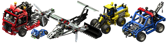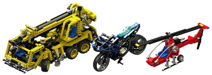 Все новые модели вообще не использовали брики, теперь всё строится из гладких лифтармов, а если бриков нет, то и придерживаться чётной ширины моделей больше нет необходимости. Из-за этого надобность в осях нечётной длины стала больше, к существующим 3 и 5 добавляют 7. Цвет нечётных осей теперь светло-серый (что бы искать было проще), пины осью на конце тоже меняют свой цвет, они теперь бежевые, плюс к этому появились синие, они плохо крутятся и сидят в отверстиях плотнее. Старые переключатели и цилиндры в пневматической системы заменили на новые без креплений к брикам. Ну и новые колёса 81мм в диаметре с новыми дисками.