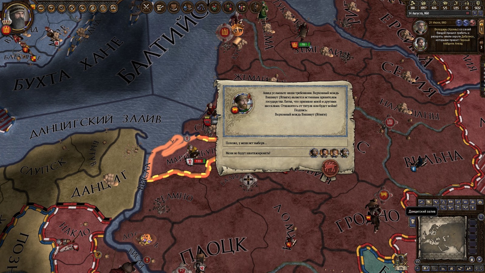 Король погрустил об утрате своих земель, но решил, что настанет время и он вернет под свой контроль Гродно. А пока Ламмекинус решил сосредоточится на пополнении казны, налаживании торговых маршрутов с далекими государствами и застройкой своих земель, мечтая о полноценной крепости и установлении феодального строя. Ожидание не прошло даром - в возрасте 51 года Сартач погиб на охоте и собранные у границы войска моментально перешли в атаку, отбив исконно литовские земли (или по крайней мере честно захваченные пару поколений назад).