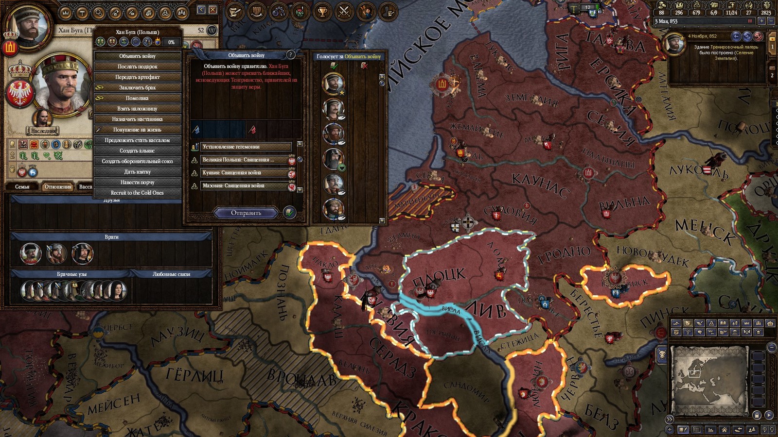Новопосвященный послушник Чернобога устраивал оргии почти каждую неделю, осквернял свои же храмы, предавался всем порокам без ограничений. Про благополучие страны король тоже не забывал: ослабевшей Польше была объявлена священная война за Мазовию, которую с некоторым трудом удалось выиграть. Эта война позволила отбросить от своих границ потенциально опасного врага.