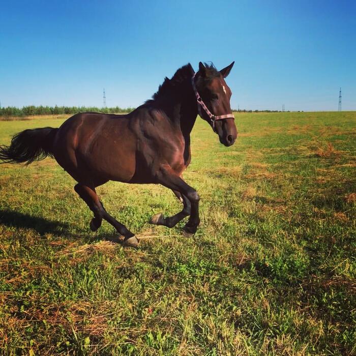 Наша история началась в 2010 году, когда к нам на конюшню (ксок рамаевский, сейчас уже не существующий) привезли кобылу на обмен. Привезли ее как лошадь для проката под новичков, на деле же оказалось что она была не заезжена и любила свечить ( это любовь до сих пор сохранилась😅), не знаю чем, но она меня сразу зацепила, хотя я всегда думала что никогда не куплю рысака, никогда не куплю гнедую и никогда не куплю кобылу. Но любовь штука такая. Мы начали с ней заниматься, тогда ещё у меня было очень очень мало опыта, но мы нашли общий язык и она стала моей любимой кобылой.