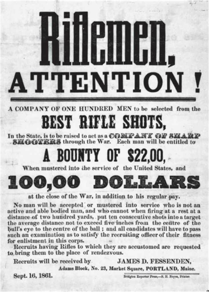 На фото: Andrews Sharpshooters (1st Massachusetts), названные в честь губернатора штата Джона Энндрю. Первый слева: капитан Джек Сандерс, командир этих бравых парней. Иллюстрация из книги «Sniper at War» John Walter and Martin Pegler.