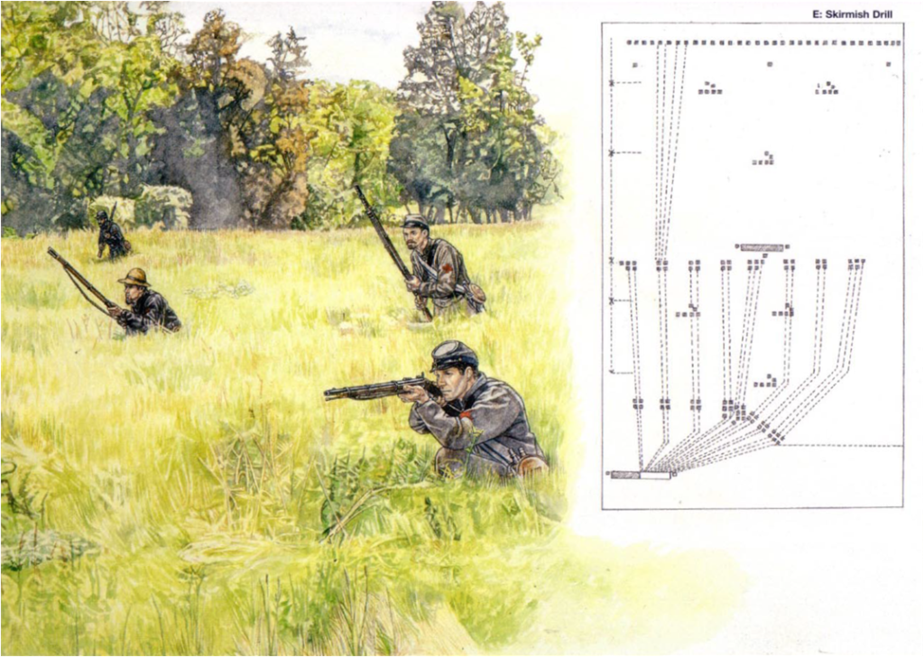 В качестве примера плотного построения: Штыковая атака при Фейр-Оакс 31 мая-1 июня 1862 (Вирджиния). Газета «Harper’s Weekly» от 16 августа 1862
