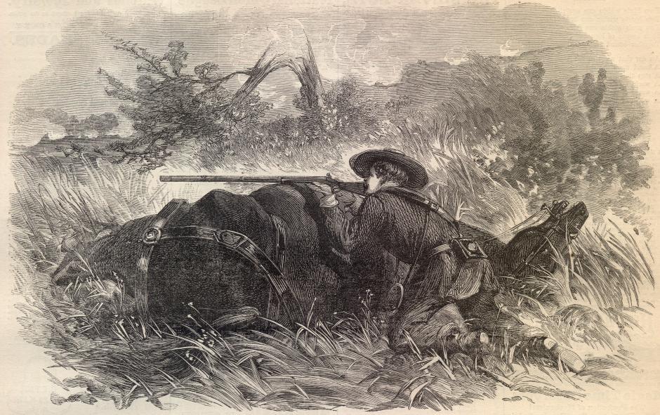 Стрелок укрылся за мертвой лошадью. Газета «Harper’s Weekly» от 10 октября 1863