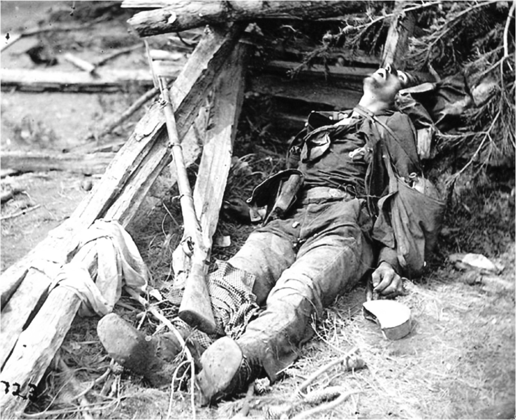 Результат противоснайперской работы – убитый снайпер-южанин в битве при Геттисберге [12, 45]
