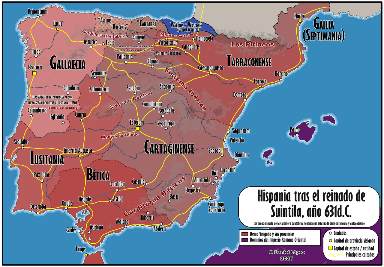 (Легендарное золотое блюдо пропало без следа, разных мужиков-королей показывать мне надоело, так что тут будет карта Вестготского королевства времен Свинтилы)