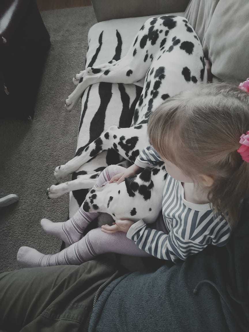 Кстати дочь и жена очень любят его одевать в дурацкие наряды. Вряд ли он в восторге, но жестокого обращения с животными тут не усматривается.