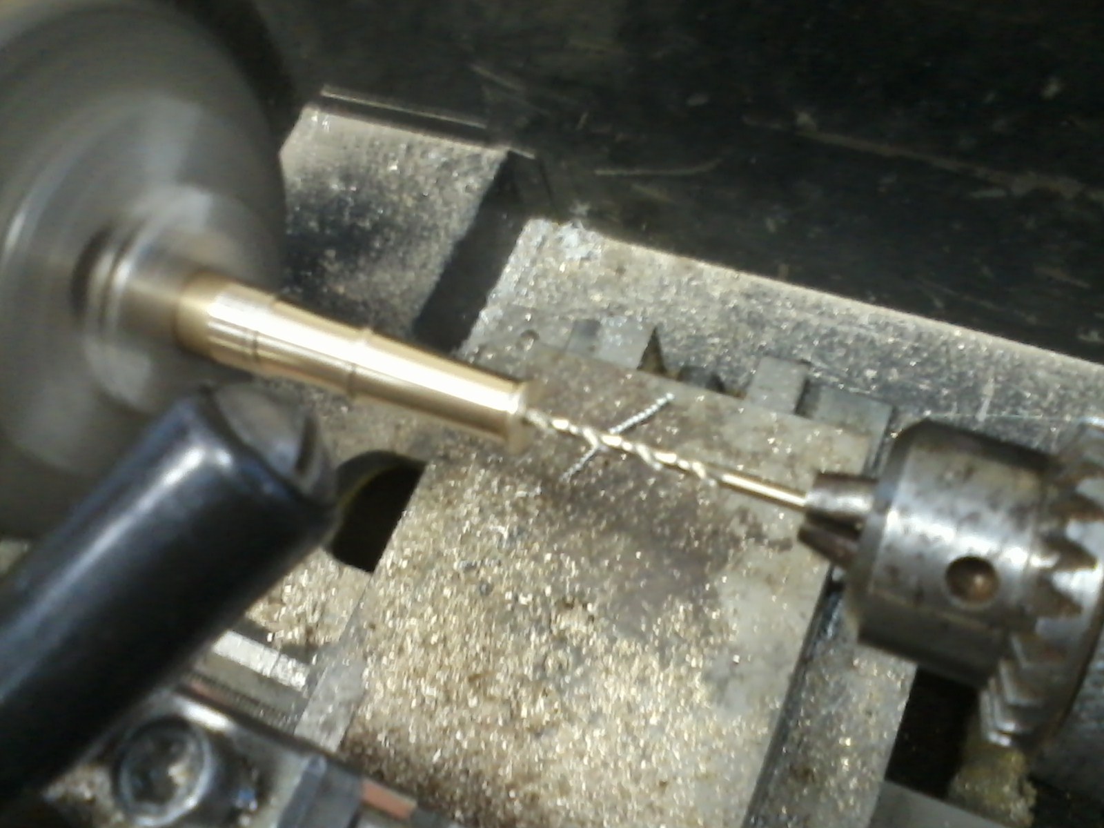 После этого придал заготовке уже более окончательную форму. Затем отцентрировал центровочным сверлом.
