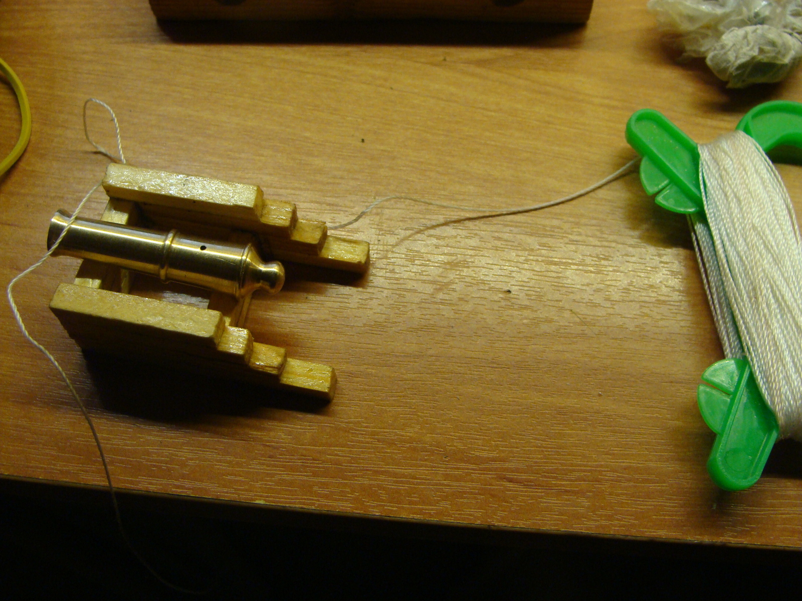 Далее я взял веревку и закрепил ствол на лафете.
