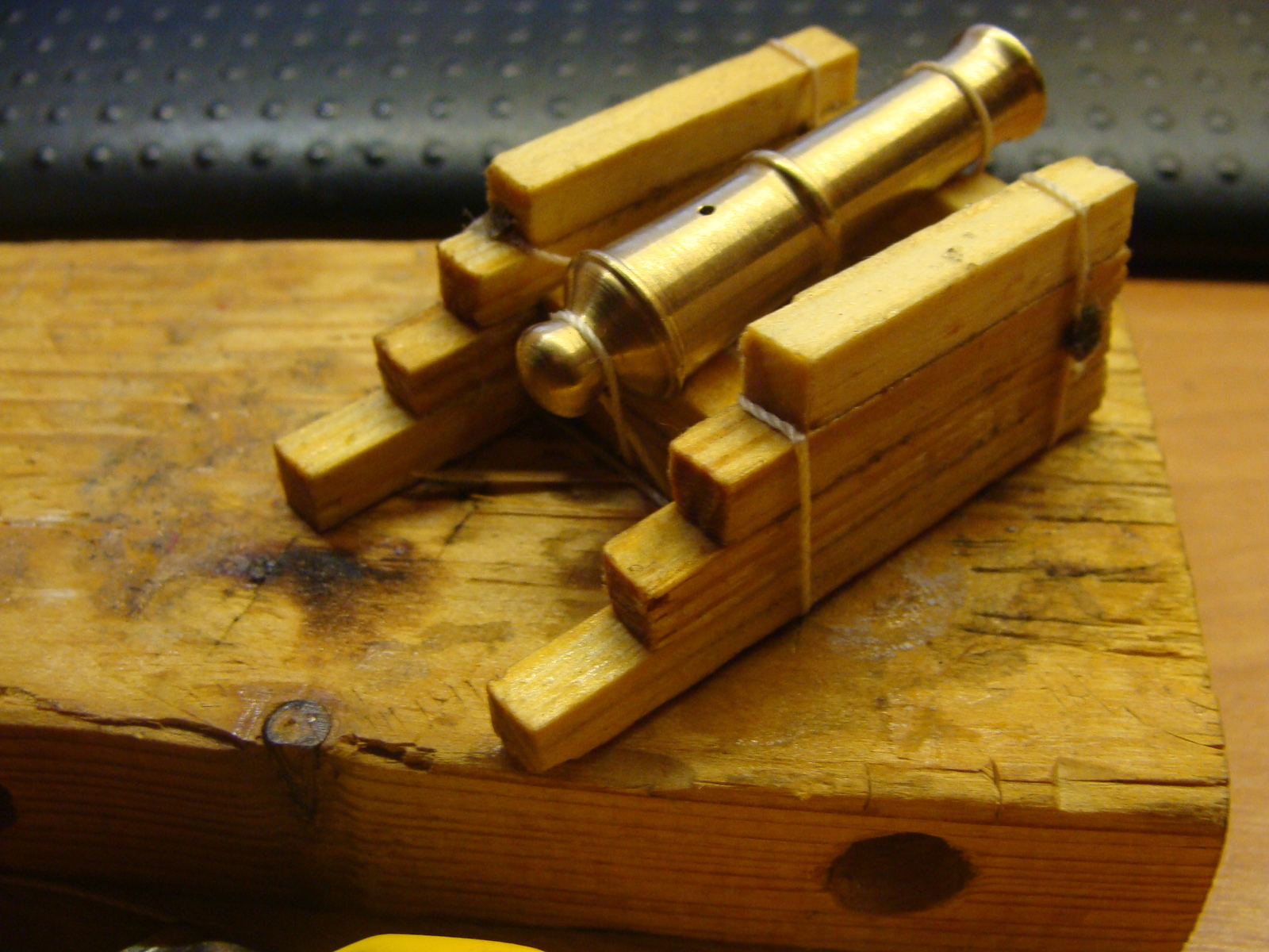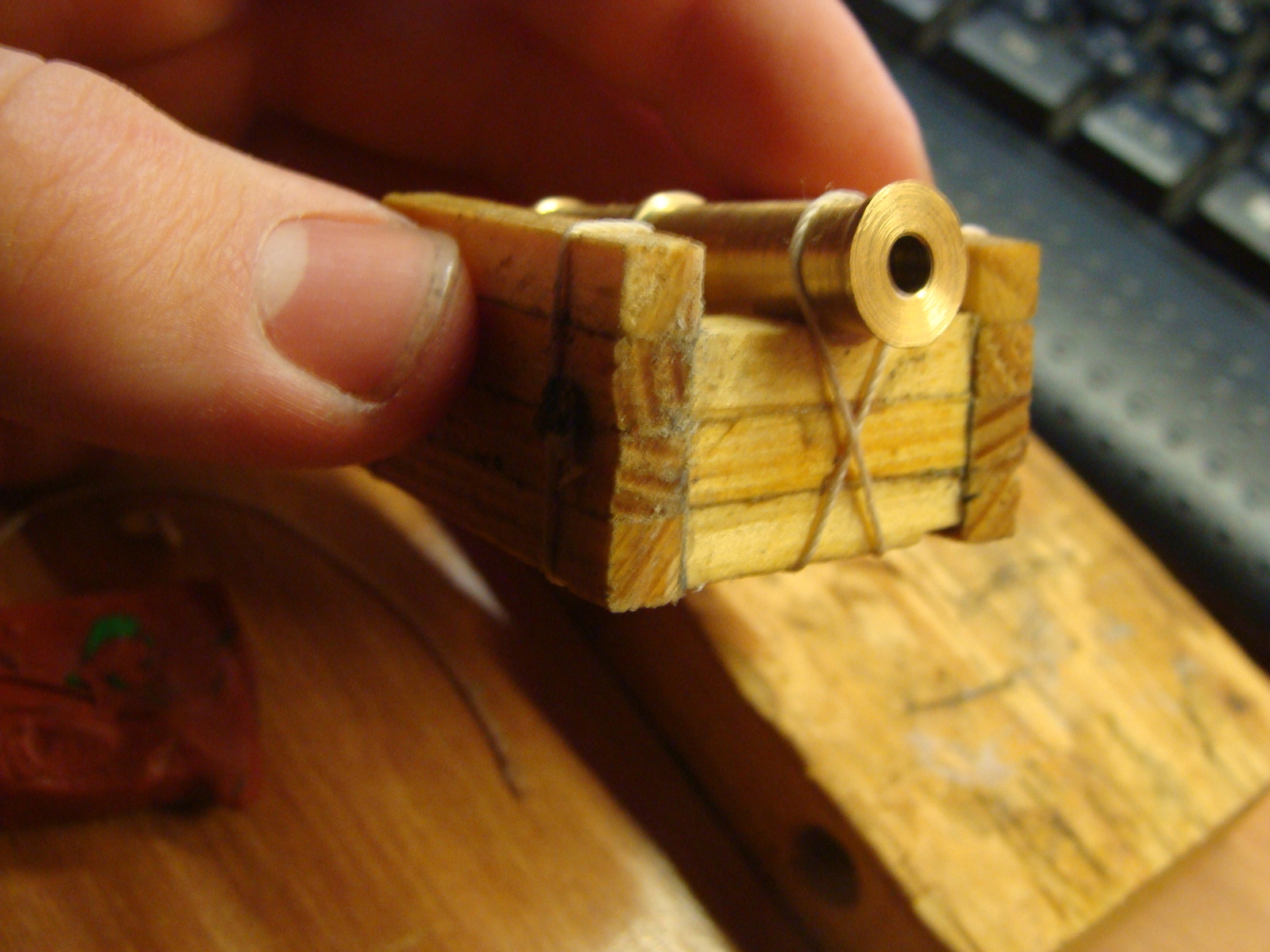 И наконец, я подобрался к изготовлению лафета. Вырезал брусочки 5 мм на 5 мм, а дальше порезал их по длине и начал склеивать моментом.