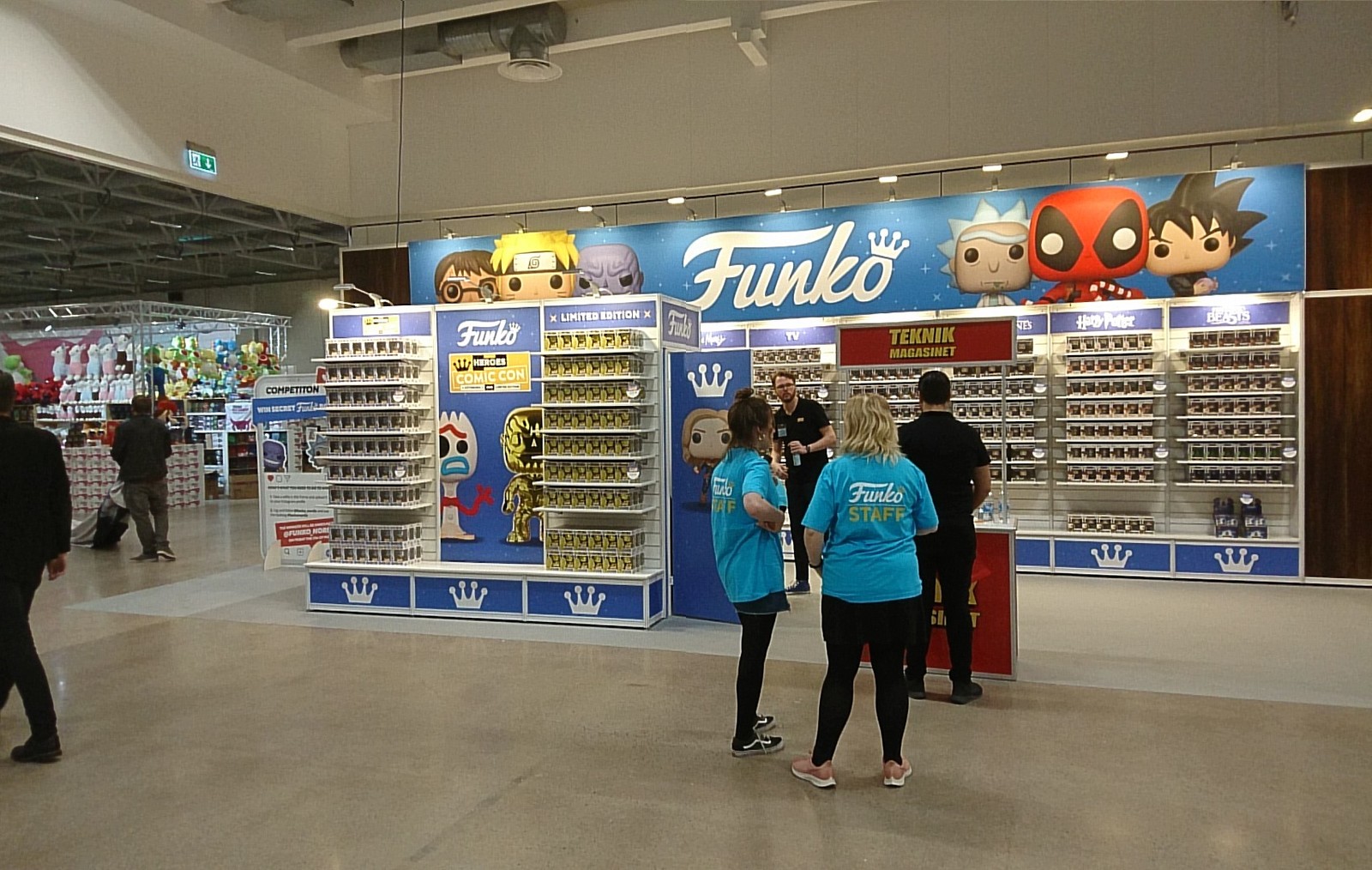 Второй павильон был отведён под мерч. Десятки стеллажей и киосков с самой разнообразной продукцией. Тут вам и футболки, кружки, жетоны, картины, фигурки и много всякой всячины.