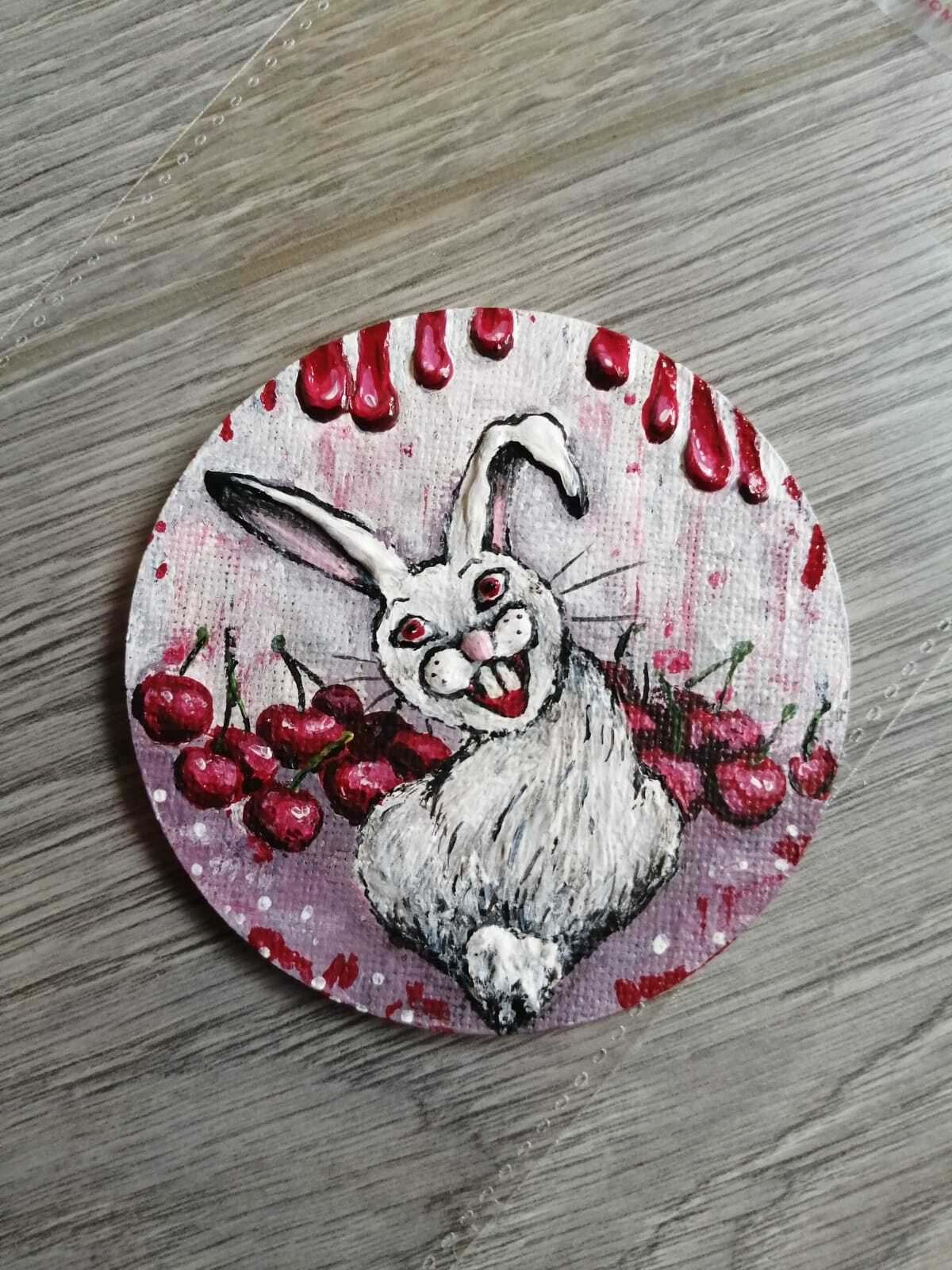 Началось всё с кровавого кролика. Это магнит, часть рисунка с рельефом. Вышел совершенно упоротый зверь!