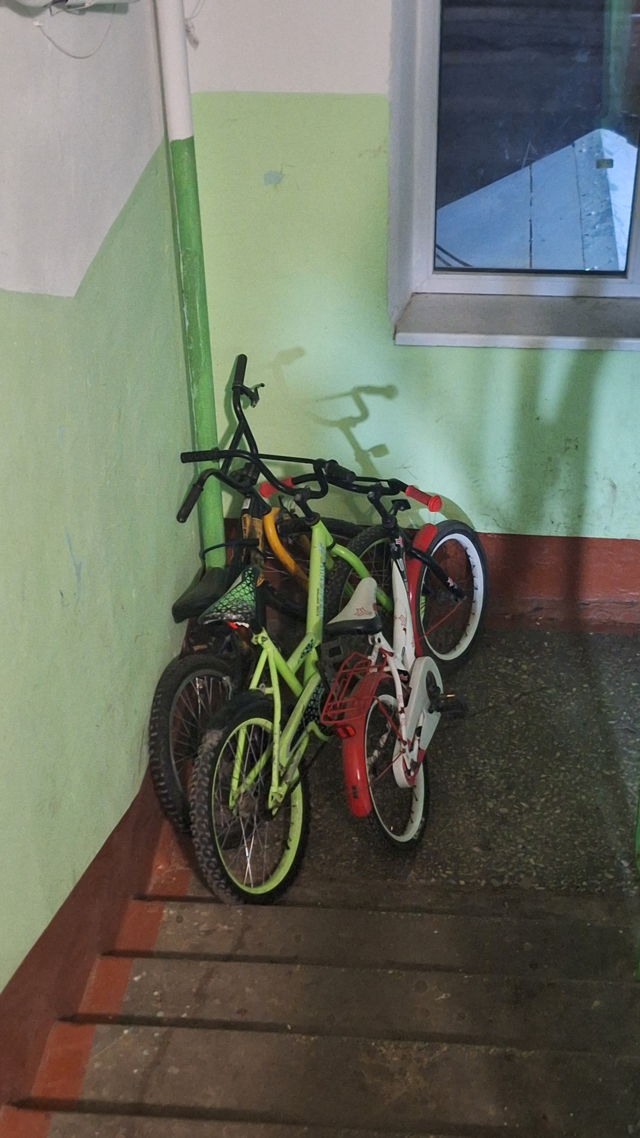 Есть ещё один сосед, лет 55, живёт на одном этаже со мной, говорит, что если будет пожар, то из-за велосипедов будет давка. Как-то раз, выхожу я на улицу и вижу 2 велосипеда у подъезда валяются и сосед на пеньке сидит и курит. Оказывается, ему все надоело и он сбросил 2 велосипеда, которые были не пристёгнуты из окна, они, конечно, поломались. Раза 4 он у меня спросил, одобряю ли я то, что он сделал. Я сказал, что да, с одной стороны правильно, с другой, почему дети должны страдать из-за родителей? Вот такая история одного подъезда.