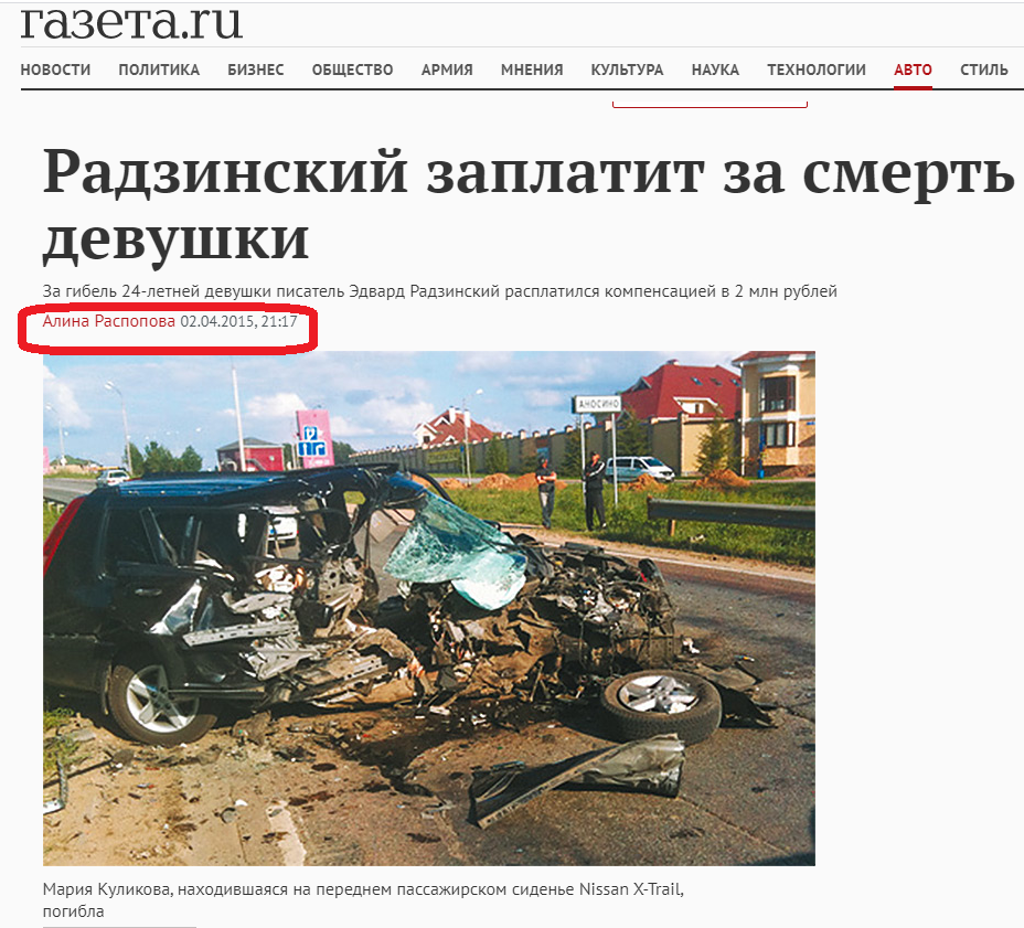 А с Ефремовым попроще, есть видео. Видимо в случае с Радзинским видео нет, поэтому все зависит от того, как нарисовать осмотр места происшествия.