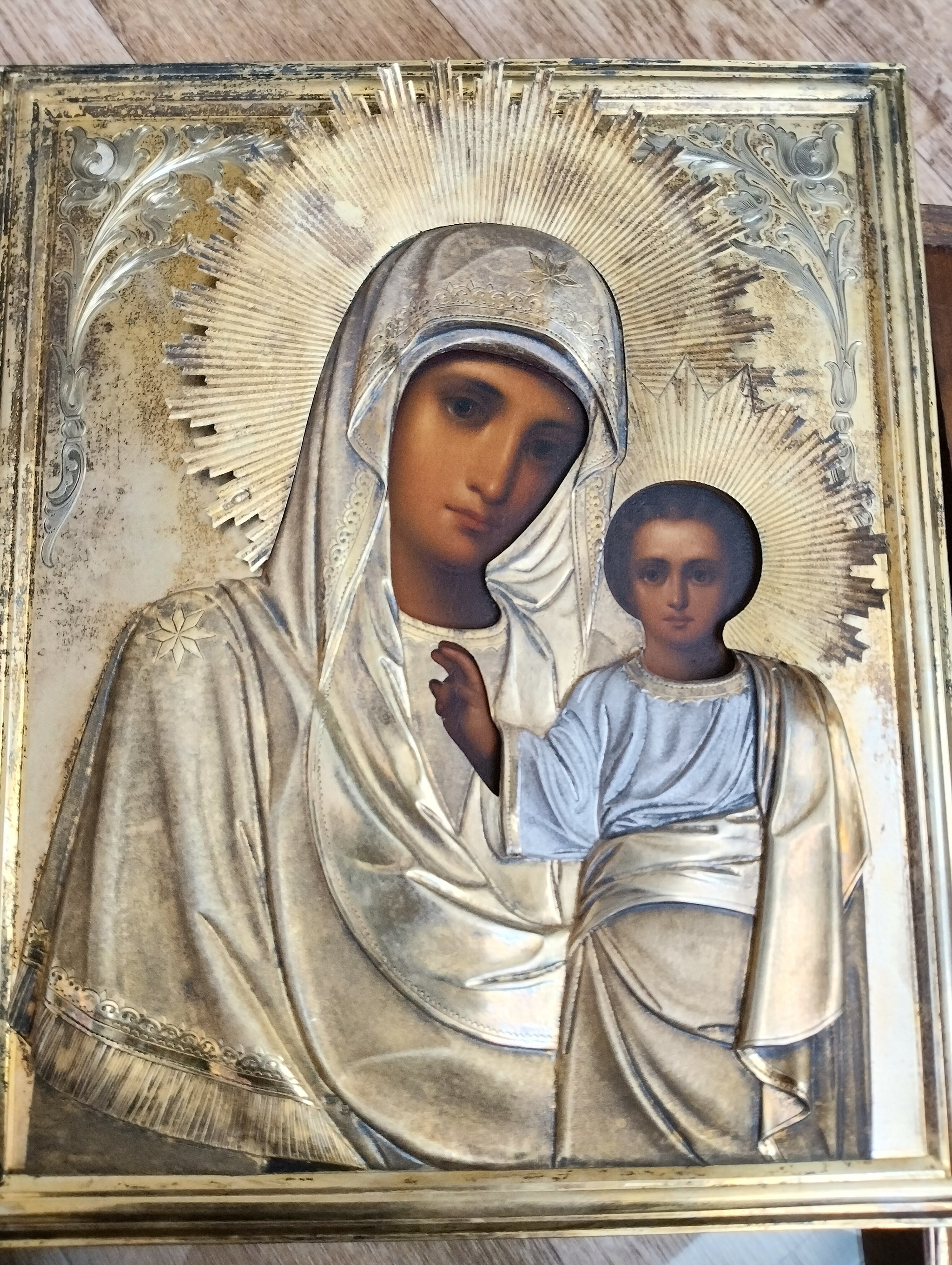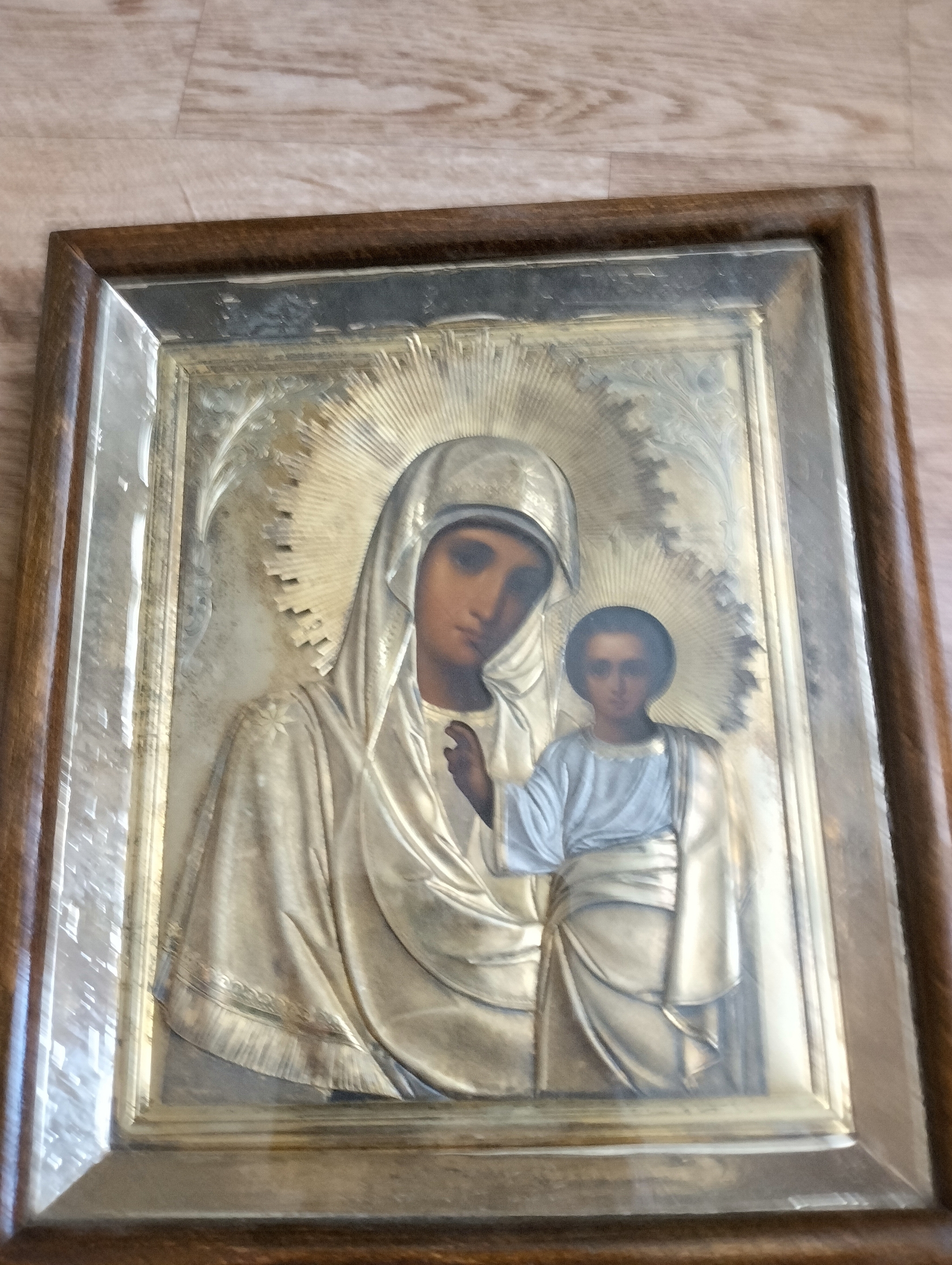 Как -то заехал к теще на блины ,и за разговором она мне показала семейную икону в киоте.Выдав при этом, интересную историю о том,что одна из бабок была игуменьей Иверского монастыря в Самаре ,а икона -одна из тех,что монахини спасали от большевиков ,когда разрушали монастырь. Икона в киоте,открутил винты ,достал ...шикарное состояние ,оклад серебро 84пр.,сусальное золото,а сзади та самая запись.Далее ,гугл в помощь ,сайт монастыря ,история от основания до 1917 года,а далее ..нет такой такой игуменьи и не было в их списках, или все -таки 17 год внес свою лепту. Теща рассказывала ,что монахини спасли самые ценные иконы и вещи ,а потом прятались от Советской власти.