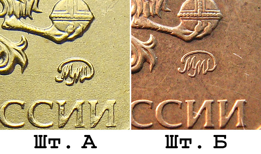 Позже в каталоге разновидностей А. Сташкина появилась новая позиция: 10 рублей 2016 года ММД штемпель Б (знак тоньше, смещён влево-вверх к лапе орла).