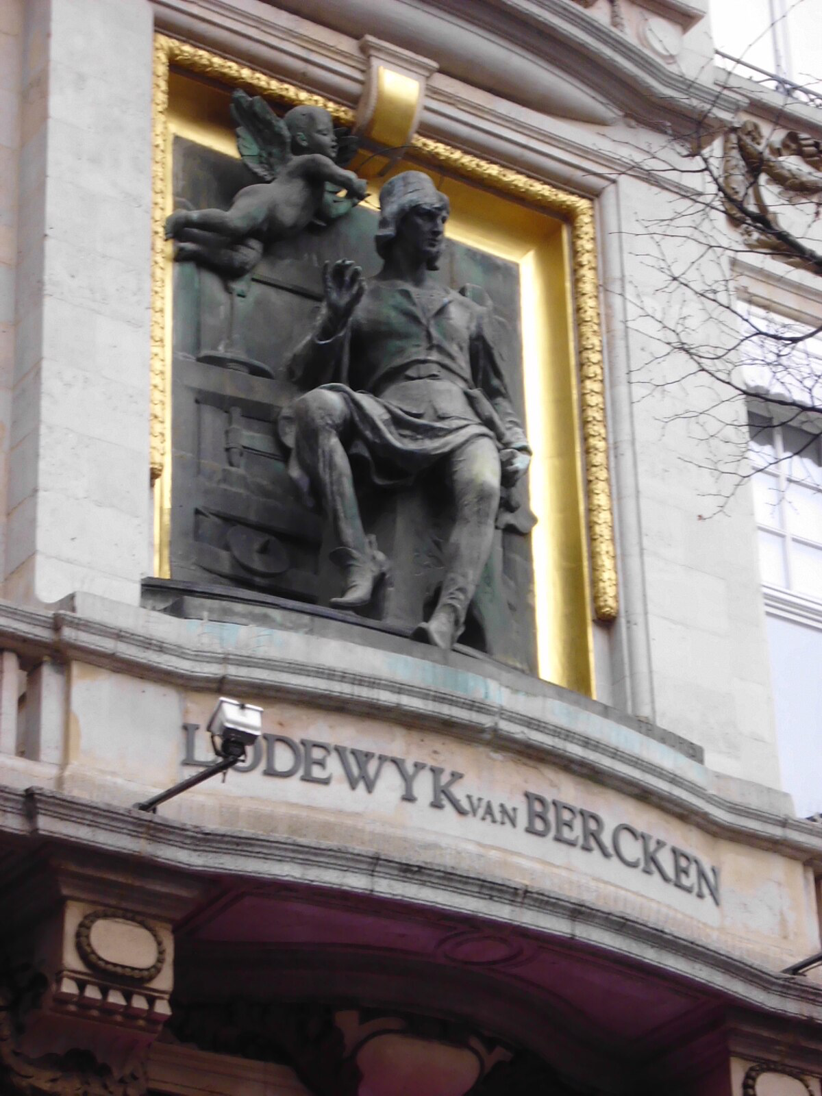 Ремарка: абсолютно достоверных сведений по поводу изобретения ван Беркеном чего-либо нет, как нет и абсолютно точного отрицания его вклада в огранку. Известно наверняка лишь то, что мастер занимался огранкой, гранил алмазы и памятник ему находится на одном из домов в Амстердаме – на нём Людовик ван Беркен держит в руке ограненный алмаз
