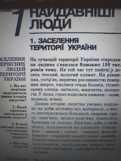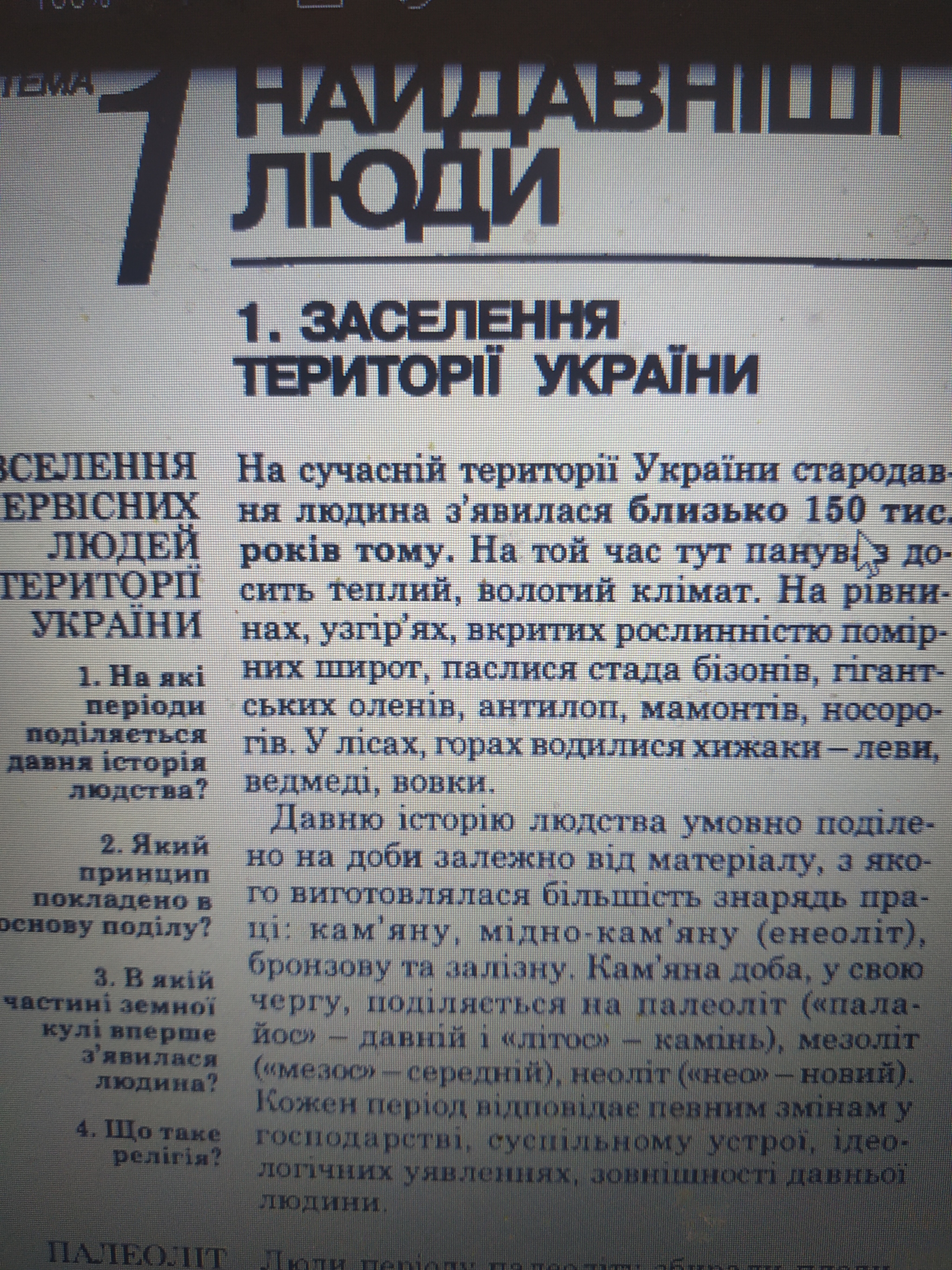 Быстрым гуглением не получилось найти перевод этого учебника, но на украинском подтверждаю, что написано лишь "На современной территории Украины древний человек появился около 150 тыс. лет назад".