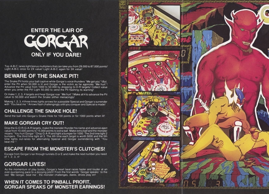 В 1979 году пинбол заговорил. Первый говорящий аппарат Gorgar от Williams обладал словарным запасом из 7 слов (даже меньше чем у Эллочки людоедки), которые можно было объединить в простые предложения. А сам процесс игры, в котором Варвару необходимо отправиться в вулканическое логово и сразиться с демоном Горгаром, чтобы спасти свою любовницу, сопровождался нарастающим стуком сердцебиения.