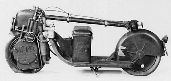 Как утверждает Онлайн-музей велосипеда, автопед — это, по сути, «увеличенный детский самокат с двигателем, водруженным на переднее колесо».