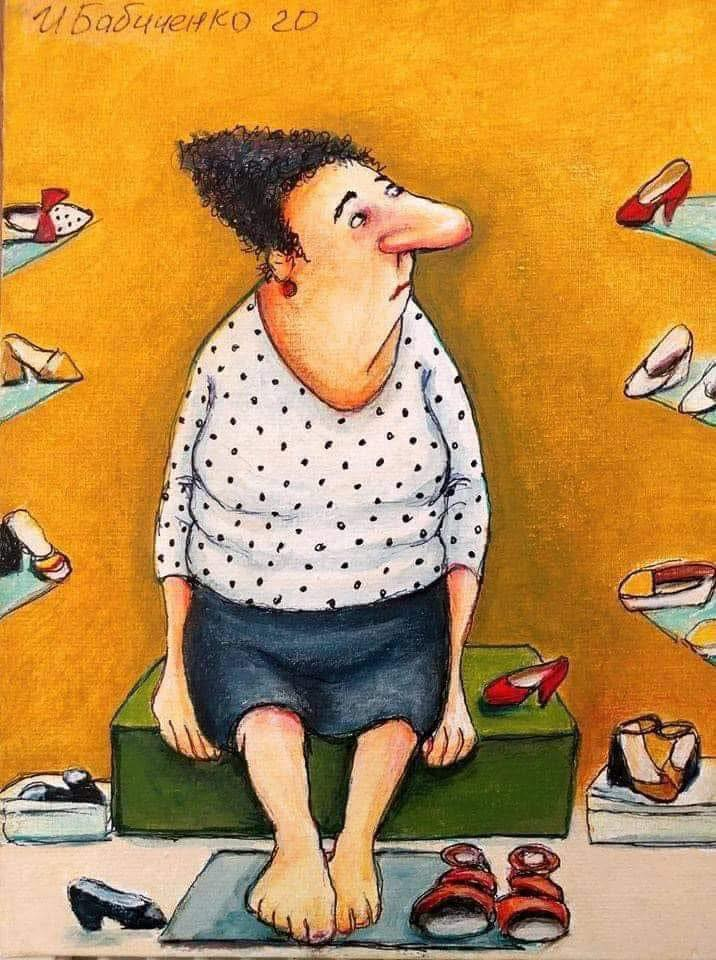 В субботу, отправив мужа на работу, она, сгорая от нетерпения в ожидании долгожданной обновки, побежала на черный, естественно, рынок, рассчитывая на указанную сумму денег. Обойдя несколько рядов, наконец, видит то, что нужно: красивейшие австрийские сапоги; модель, качество - предел мечтаний. Подходит ближе, рассматривает все до мелочей и убеждается в том, что это то, что она искала. Продавец - милейшая женщина, возраст где-то за 50, сама доброта и вежливость, и между женщинами завязывается душевный разговор о предстоящей покупке. Выясняется, что стоит эта пара сапог 300 рублей, и моя знакомая решает их примерить. Начинает примерять, но в одной руке - одна сумка, в другой - вторая, примерить не удается. Продавец предлагает поставить сумки на землю. Тогда она ставит одну из сумок, а другую подает продавцу и говорит ей на ушко: - Подержите, пожалуйста, эту сумку, я не хочу ее ставить - в ней ОЧЕНЬ много денег. Отдав сумку в надежные руки, она, успокоившись, отходит в сторонку, надевает сапоги, и со словами "По-моему, как раз" поворачивается к продавцу и с ужасом видит, что ни продавца, ни сумки НЕТ! Обежав весь рынок в поисках "милой женщины" она, вся в слезах, возвращается домой, не зная, как все объяснить мужу: сапоги-то в руках, но где остальные деньги? К ее возвращению муж уже был дома. Первое, что он спросил, встречая жену у порога, хитро глядя ей в глаза, с нескрываемым сарказмом: - Ну, что, купила? - Купила, - только и оставалось ей ответить с дрожью в голосе, а в голове пронеслось "Он все знает!". - Интересно, как ты могла купить - ты ж кошелек забыла на столе.