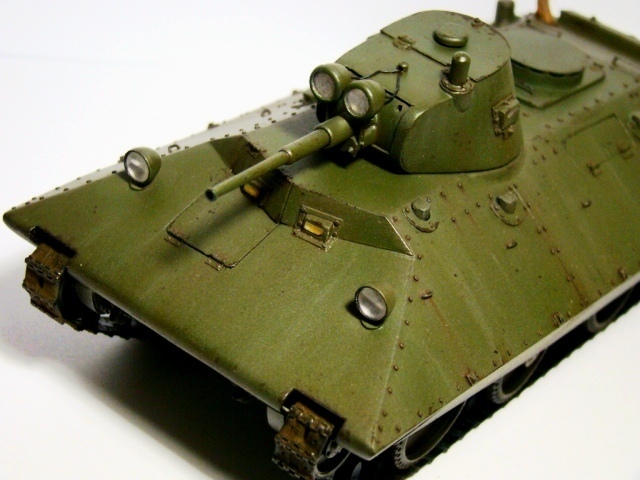БТ-СВ-2 (Быстроходный Танк «Сталин-Ворошилов») — советский колёсно-гусеничный танк 1930-х годов.В 1937 году на заводе № 48 под руководством Н. Ф. Цыганова началась разработка танка с улучшенной броневой защитой на базе БТ-7. Изготовленная в конце года единичная машина получила обозначение БТ-СВ-2 «Черепаха».пс. Модель самодел из акрила крашена кистью. Про руки все знаю, солдат для наглядности, он ждет свой т55.