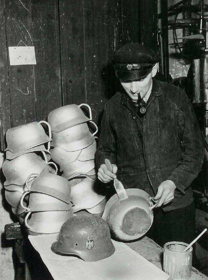 Датский мастер переделывает немецкие каски в ночные горшки. Дания, 1945 год.