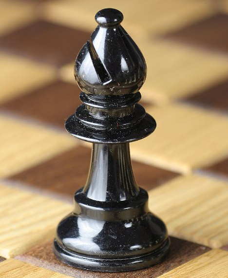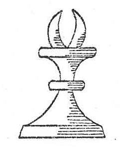 В русском языке он сохранил своё исходное значение. На западе же его называют "епископ", "шут" и так далее. Причина - навершие из двух острых зубцов, которые напоминали головной убор епископов или бубенцы шута. Позднее эти два зубца слились воедино и теперь представляют собой конус. Зубцы - ни что иное, как бивни, которыми стали обозначать слона арабы.
