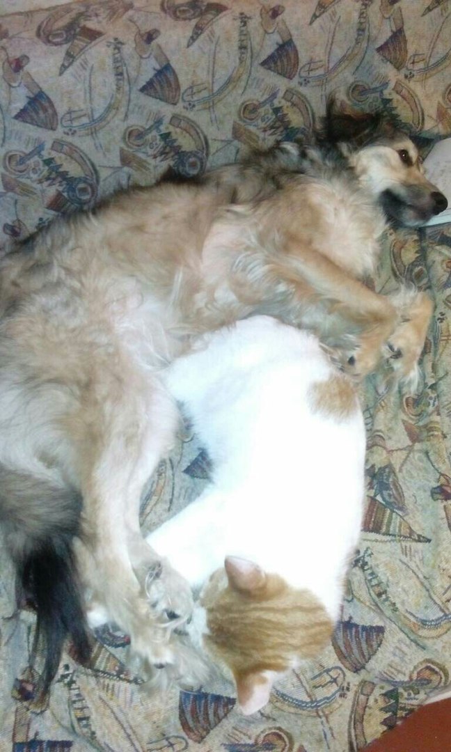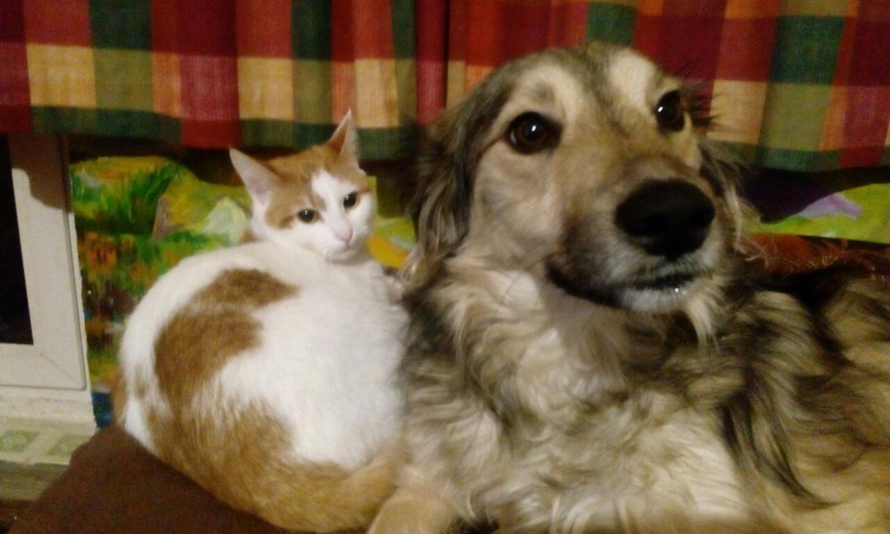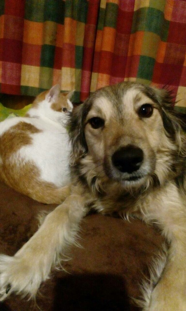 С кошкой на фото у них любовь. Всегда вместе. Играют, спят, кушают, отдыхают. Дома есть и второй кот, он спокойнее.  Месяцы бок о бок с нашим котом прошли не бесследно) У Цили-Эльзы молодая хозяйка-школьница, они сразу нашли общий язык. Меня очень радует, что ребенок-подросток не скинул уход за собакой на родителей. Уделяет ей время, дрессирует. выгуливает. Умница.