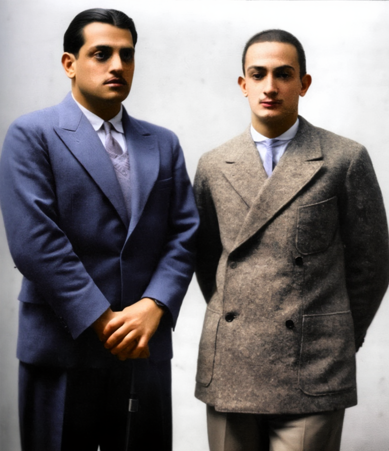 На этом знаковом снимке запечатлены две центральные фигуры сюрреалистического движения — режиссёр Луис Бунюэль и художник Сальвадор Дали. 1929 год был для них особенно плодотворным: именно тогда они совместно работали над революционным короткометражным фильмом «Андалузский пёс» (Un Chien Andalou), который стал одним из самых ярких манифестов сюрреализма в кино, шокировав и восхитив публику своей дерзкой образностью и полным отсутствием логического повествования.
