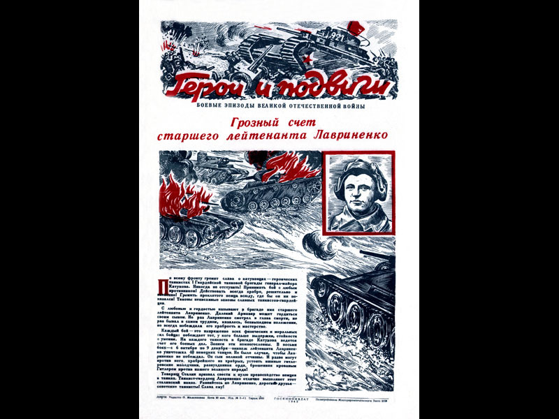Листовка о подвигах легендарного советского танкиста Д.Н. Лавриненко, уничтожившего 40 фашистских танков.