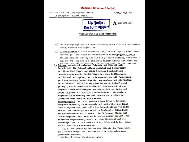Обложка плана "Тайфун", предусматривавшего окружение и уничтожение советских войск под Москвой. 1941 г.
