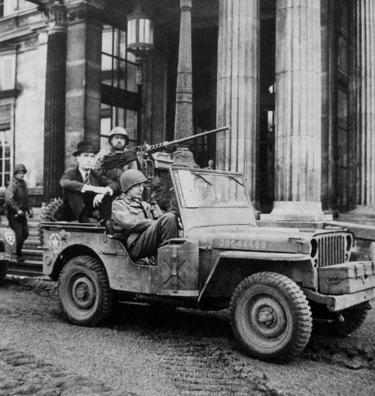 Арестованный американскими солдатами немецкий промышленник Альфрид Крупп фон Болен унд Гальбах (Alfried Felix Alwyn Krupp von Bohlen und Halbach, 1907—1967) сидит в армейском внедорожнике армии США. 11.04.1945