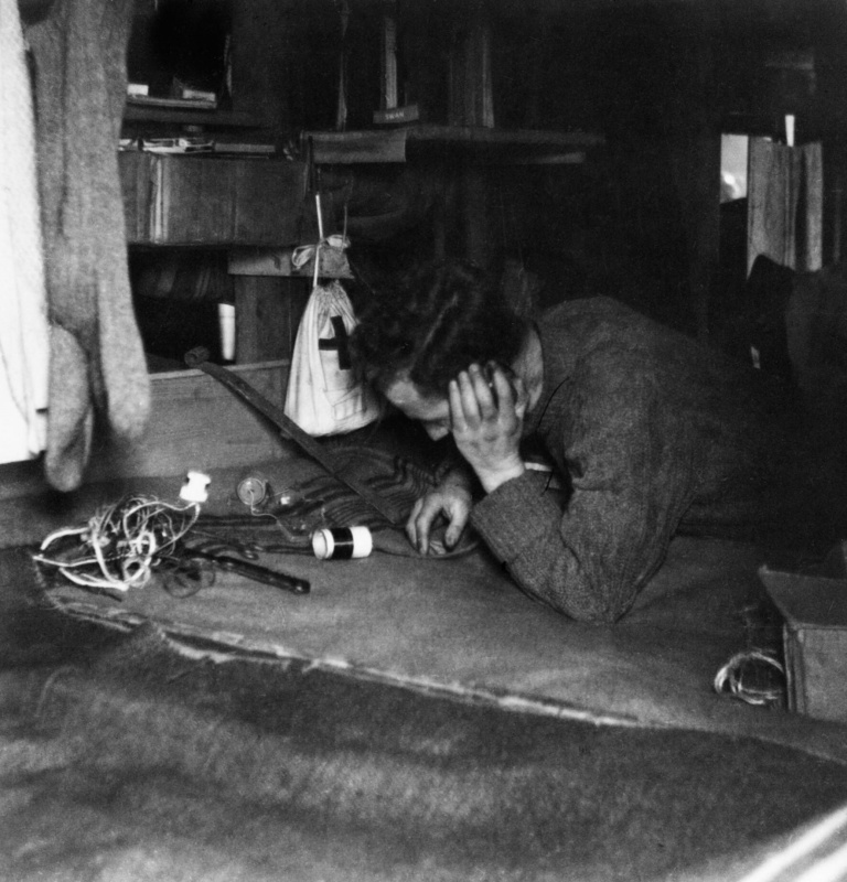 На фото запечатлён британец Х. Галливор (H. Gullivor), который настраивает самодельный детекторный радиоприёмник, пытаясь поймать новостную радиостанцию.