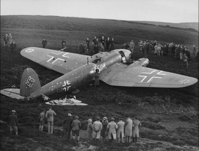 Сбитым бомбардировщиком является Хейнкель He.111H №5449 из штабного звена 26-й бомбардировочной эскадры. «Хейнкель» был сбит 28.10.1939 г. истребителями «Спитфайр» и совершил вынужденную посадку в районе городка Ламермур Хиллс, неподалеку от Эдинбурга.