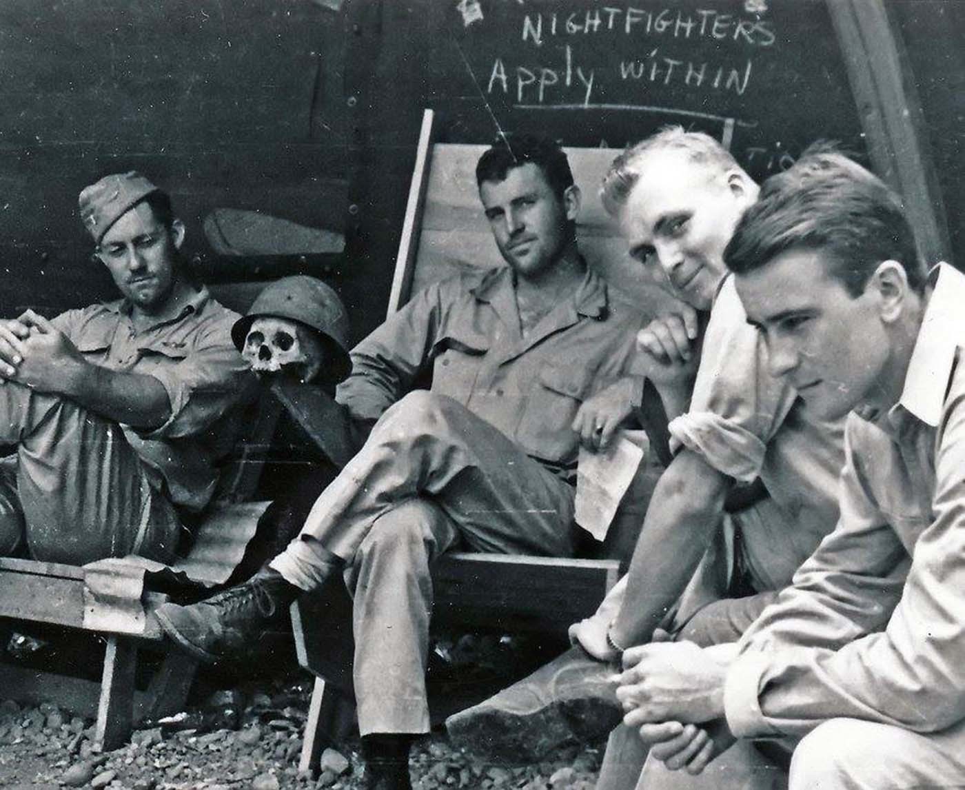 Отдыхающие американские пилоты с трофеем. 1944 год.