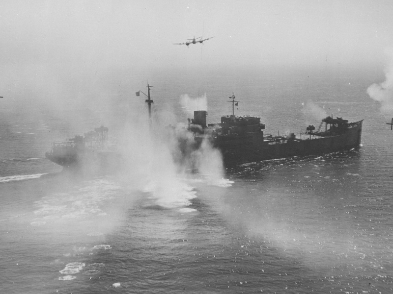 Британские штурмовики «Бофайтер» (Bristol Beaufighter) атакуют немецкое судно «Зауэрланд» (Sauerland) у французского побережья в районе порта Ла Рошель. 12.08.1944