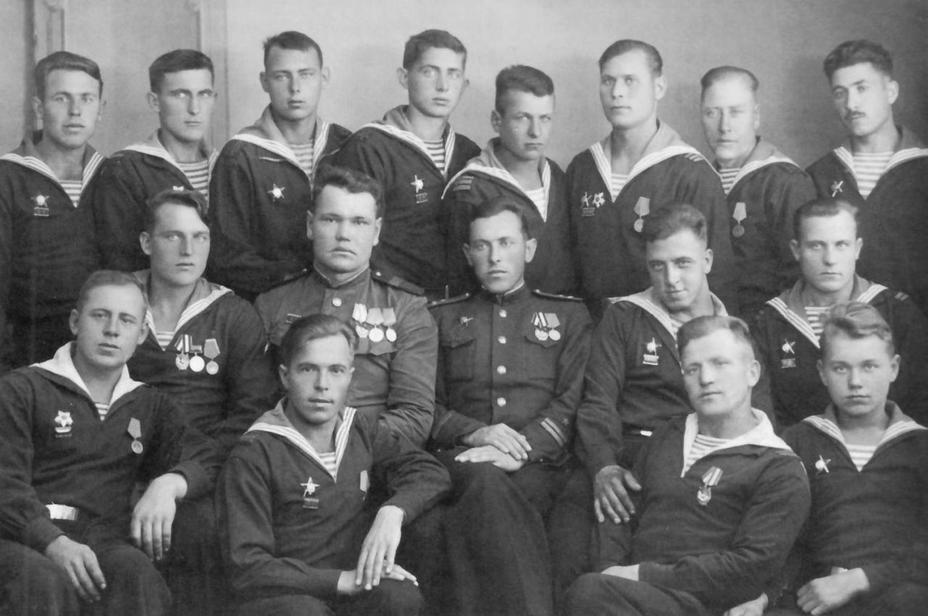 Экипаж этого малого охотника и потопил U250. В центре сидит командир корабля гвардии старший лейтенант Александр Петрович Коленко.