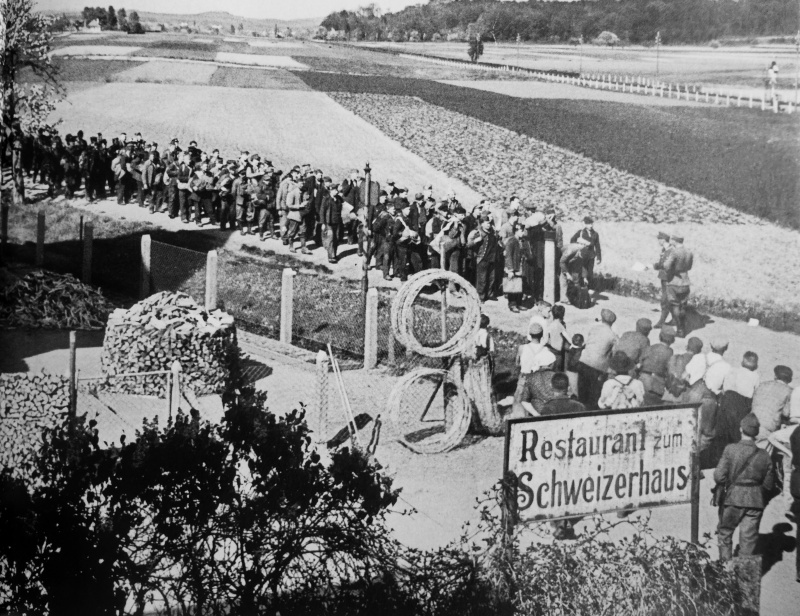 В апреле-начале мая 1945 г. из Германии на территорию Швейцарии перешли примерно 100 000 человек — бывшие подневольные рабочие и военнопленные, а также освобожденные при содействии Международного комитета Красного Креста узники концлагерей. Кроме того, в Швейцарию переходили немецкие беженцы и военнослужащие немецкой армии.
