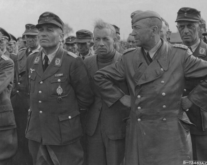 Пленные офицеры люфтваффе в строю. 1945 год.