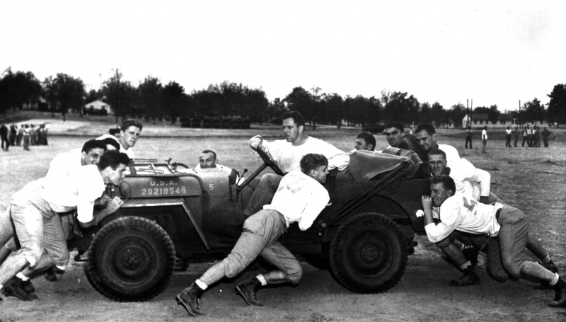 Тренировка футбольной команды в американском военном лагере